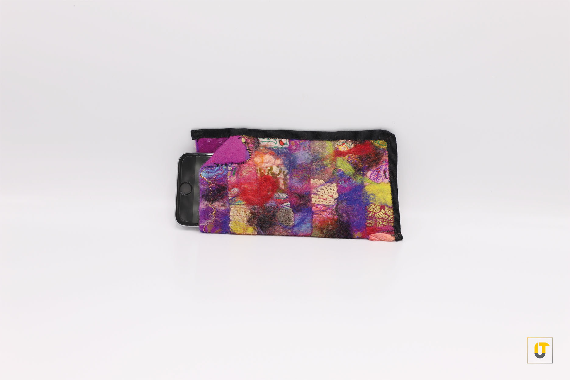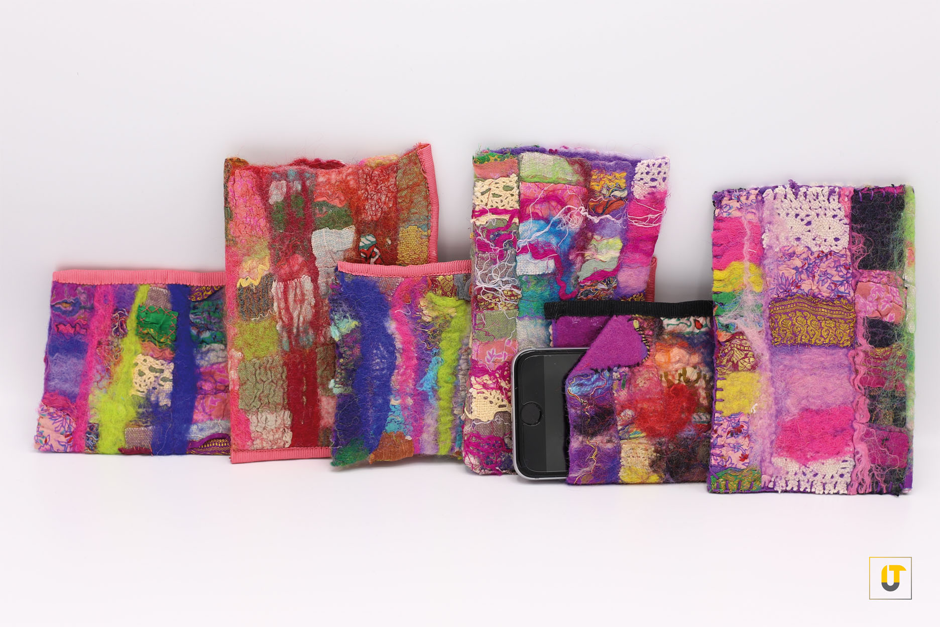materiaal: wol, vlas, linnen stoffen en afgedankte zijde sari’s